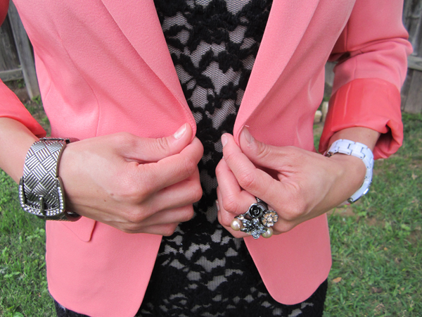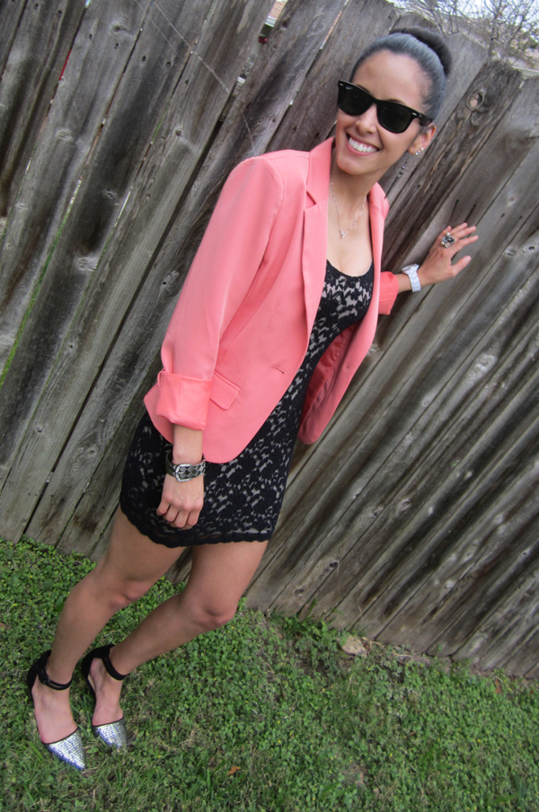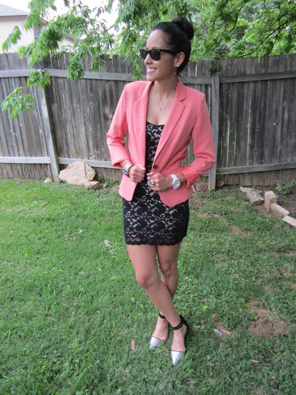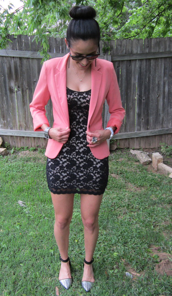 Nothing like a lace dress to make you feel cute and girly. I found this dress and fun blazer at Marshalls. I paired them together to create a classy and sexy look. My new kitten heels are from Zara. I love their diva factor and how they are still practical.