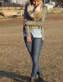 About a week ago I experienced the crazy Texas weather. I was out on the lake soaking up some sun one day and then the next it was freezing! I love pairing my Nikibiki green leather jacket with this long sleeve cream sweater for a comfy and casual look. My boots are from JcPenny. My stone ring and green snakeskin necklace were purchased at Charming Charlie.